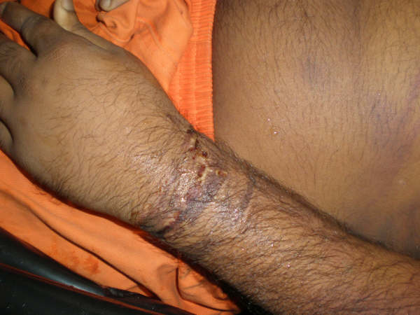 Now, the above injuries does not like caused by asthma attack. The injuries could have been inflicted before or during arrest. Also possible to be signs of torture. Marks on wrists can be due to handcuffs , or not.