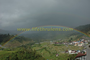 Managed to get on Internet today. Took the picture of sunrise (well, technically, it was already risen at 7.30am). And later in the afternoon, there was a complete rainbow for about 15 minutes. The weather is quite erratic over here. It rains at times in the afternoon or evenings, and even at night. Daytimes are quite hot when it is not raining.