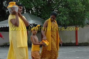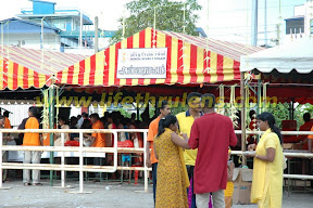 I went to shave my head, and was charged RM15. It was done at a leisurely pace since there was no crowd. After that, we joined the prayers. The crowd began to trickle in, with paal kudam carriers coming in small groups. I took some photos at the temple and took part in the prayers till 8.30am.