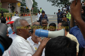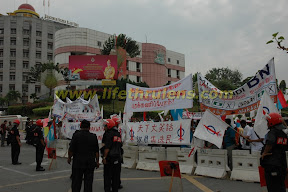The opposition camp were showing DAP, PKR and PAS flags – with slightly more Indians as compared with other races. The police had barricaded the area in front of the Dewan’s entrance, separating the BN crowd from the opposition crowd by about 40 metres or so. The BN area was quite strategic as it is well shaded by trees, while the opposition were placed in the open. Luckily, the weather was quite cloudy and the sun showed its strength occasionally only.