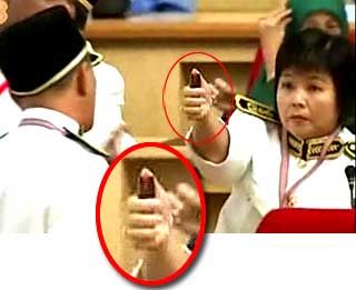 Hee claimed that someone from the assembly sitting had thrown the canister in her direction and she had just picked it up from the floor and asked Yew whether the item belonged to him. She said that is all she did.