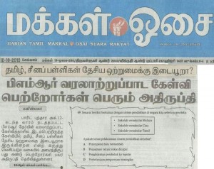 The daily reported the parents as complaining that the question had also said vernacular schools were a stumbling block to the country’s unity. They alleged that such questions would affect the mentality and morale of younger children studying in Tamil and Chinese schools.