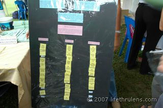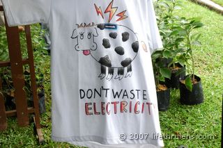 We went to to booth first, thinking that can finish that area and come back to join the treasure hunt or canopy walk later. We hit The Star's booth first and collect the free plant. Next was Nokia's booth where we submitted a postcard of pledge. This was followed by a visit to a booth promoting biodegradable food containers made from oil palm fruit (see photo below). Next to them was a booth promoting portable solar powered charger, suitable for handphones and other small electronic devices. The chargers come in a variety of bright color and cost RM499 (imported from Switzerland!) (see photo below).