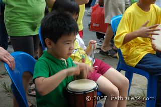 We turned back and were attracted to all those sounds coming from the Star Youth booths. The Drum Circle was in action! a group of kompang wielding boys were joined by the teenagers holding all kinds of musical instruments, some made from recycled/reused items. They were making a cacophony of sound, each immersed in their own creativity. The end result was a terrific feet-stomping blend of music (see photos below). We spend a good twenty minutes there, enjoying ourselves with the music and antics of the musicians. In fact, we did not notice that the time was already 11.30am, and we missed both the treasure hunt and the canopy walk!