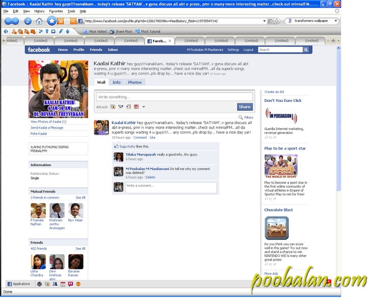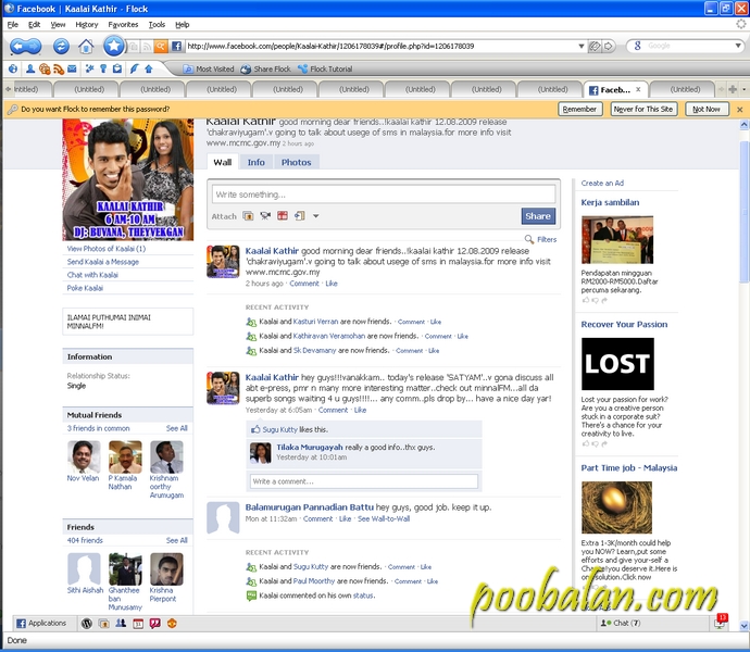 As usual I was listening to the radio in the morning. Was alternating between THR and Minnal. Around 7.45am or so, I heard the female DJ in Minnal (Buvana?) mentioning that SK Devamany urges the community to take up courses related to agriculture. She gave the website as agrolink.moa.com . I had my doubts, so I check the URL and its non-existent. So, I put a message on their Facebook presence “Kaalai Kathir” at about 8.45am or so. Another guy named Sashi also posted after me, regarding wrong URL for something called e-press. Anyway, a short while later, I found that both Sashi’s and my comments have disappeared.